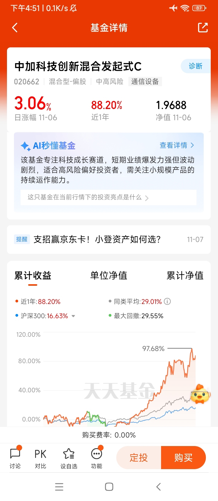 当沪指稳稳站在4000点附近,市场主线愈发清晰,代表机器人、AI算力、半导体等前沿领域的“小登资产”,已然成为本轮牛市最耀眼的明星。在众多布局科技赛道的基金中,我经过反复权衡,最终坚定选择$中加科技创新混合发起式C$。这不仅是对科技牛市主线的精准把握,更是对这只基金核心投资价值的深度认可,它早已成为我布局未来、把握超额收益的核心利器。