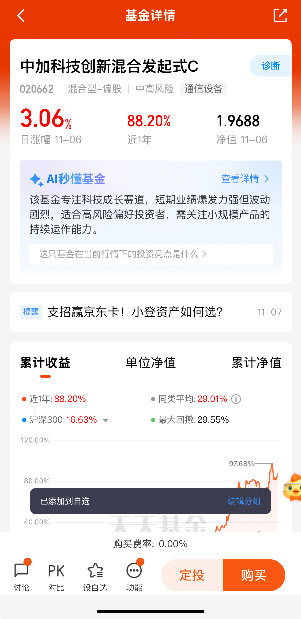 如果你看好科技等行业的发展,且能够承受一定风险,同时投资期限较长,那这只基金可以纳入你的考虑范围。不过基金的过往业绩不能代表未来表现,投资前最好再结合自己的风险承受能力和投资目标做决定。