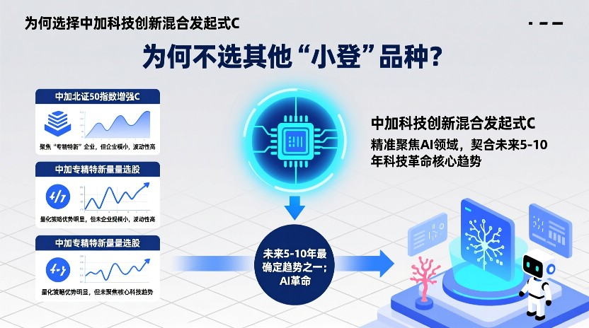 中加北证50指数增强C虽然聚焦“专精特新”企业,但北交所企业规模较小,波动性更大。而中加专精特新量化选股虽然也有其优势,但中加科技创新在AI领域的聚焦更符合当前科技潮流。