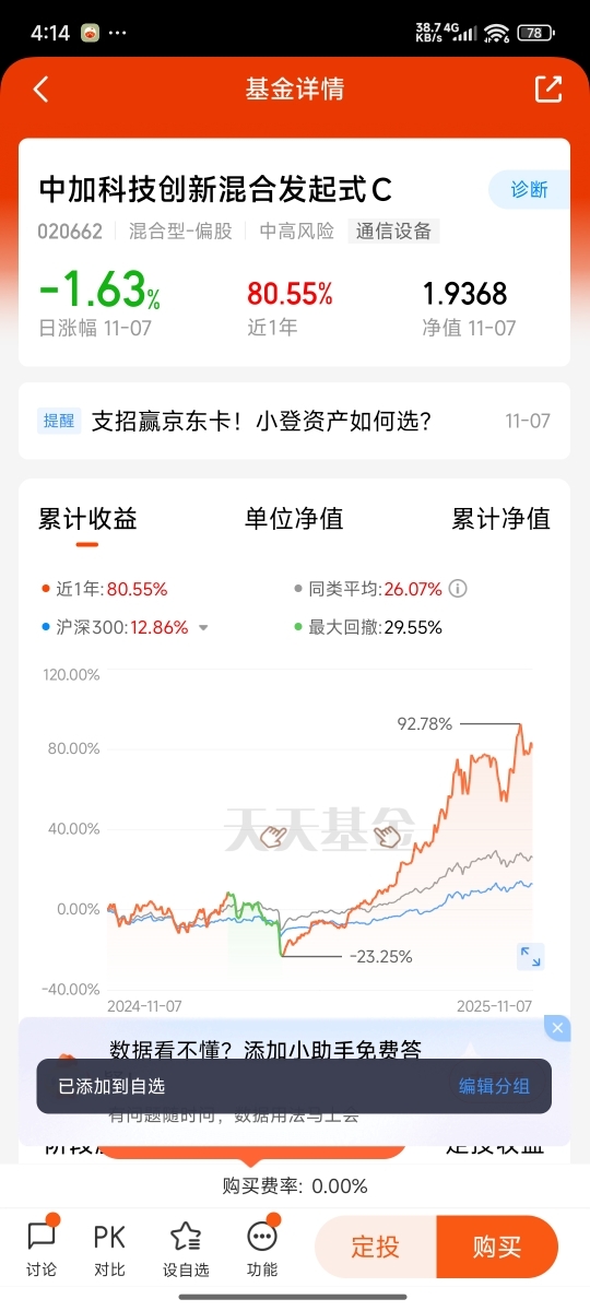 在众多小登资产标的中,我选择了中加科技创新混合发起式C。这不是一时冲动,而是基于深思熟虑的考量。