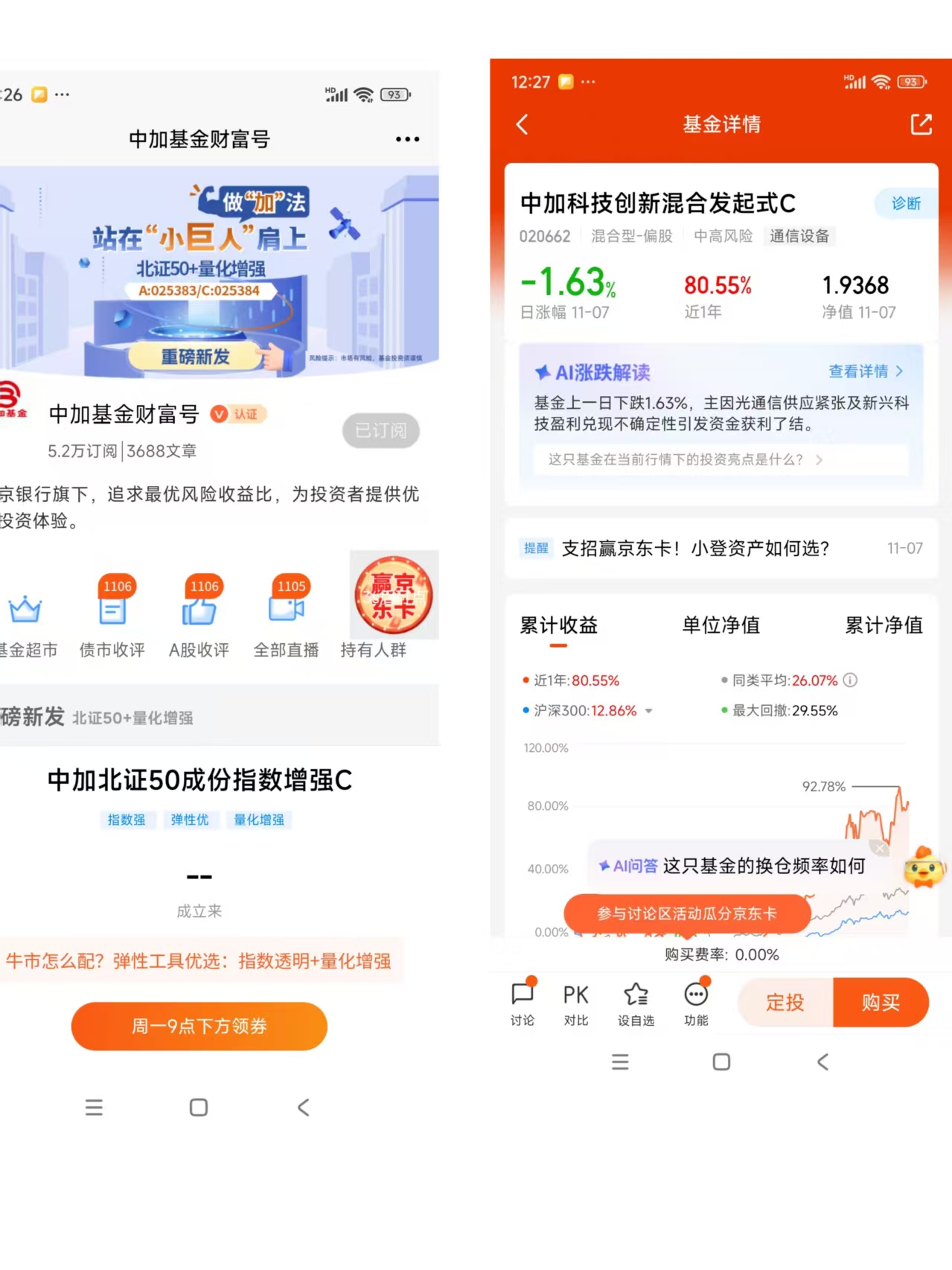#如何选择小登资产# $中加科技创新混合发起式C$ $中加北证50成份指数增强
