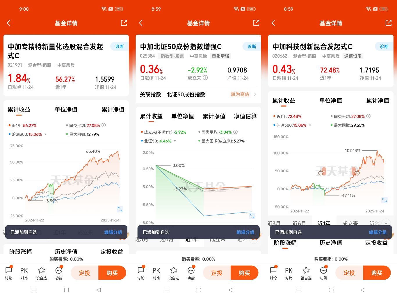 对于普通投资者而言,直接参与科技个股投资面临技术壁垒高、波动风险大等难题,而$中加科技创新混合发起式C$ 的“小而美”特性与精准赛道布局,恰好解决了这一痛点。在当前科技板块回调到位、估值与成长性重新匹配的背景下,该基金凭借灵活调仓优势,能够更好地把握板块反弹机遇。投资者可通过分批买入或定投方式参与,既规避短期市场波动风险,又能充分享受AI算力、机器人量产、半导体国产替代带来的长期成长红利。
