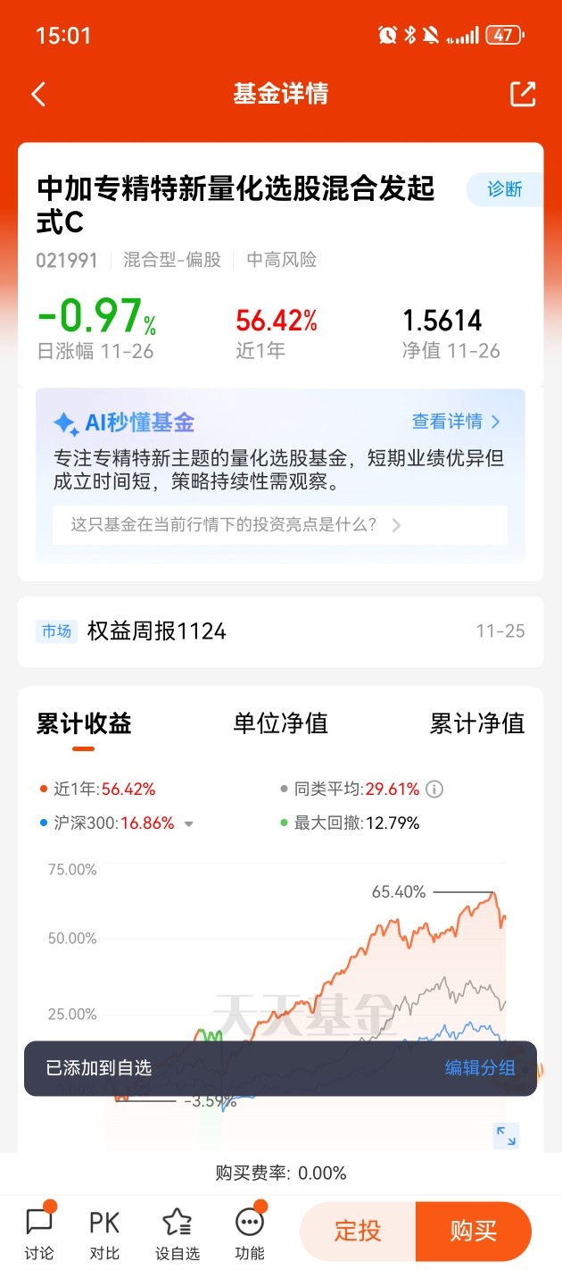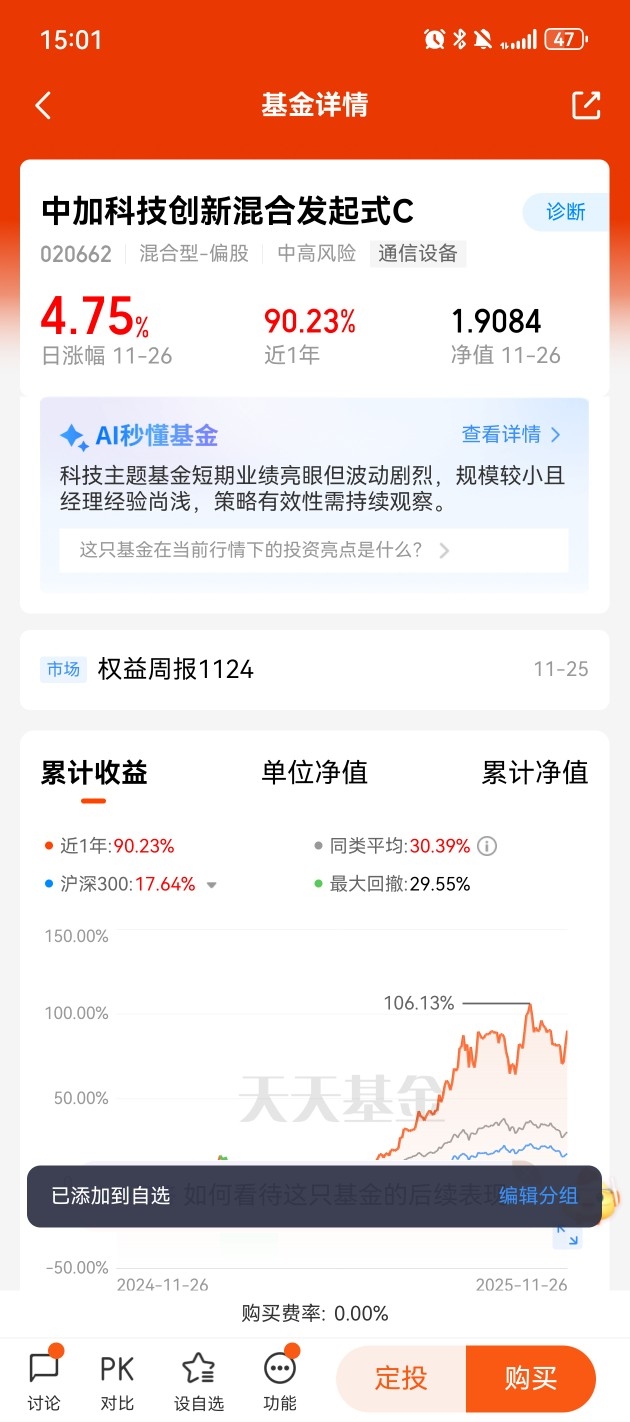 与此同时,AI应用端正加速从技术概念走向商业化落地,医疗诊断中的智能影像分析、智能办公中的多模态交互、工业场景中的智能质检、消费领域的个性化推荐等,都在持续释放商业价值,形成“硬件打底+应用增收”的双重增长逻辑。据行业数据统计,2024年国内AI应用市场规模同比增长超80%,其中智能办公、医疗AI等细分领域增速更是突破100%,商业化落地进程远超市场预期。这只基金精准踩中AI产业链的核心环节,前十大重仓股覆盖算力硬件、大模型、应用落地等多个关键节点,完美契合科技牛市的进攻属性。