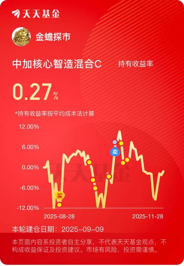 最关键的是,它C类份额免申购费,持有7天赎费就没了,和我手里的核心智造C搭配刚好。一个偏制造,一个攻科技前沿,主线buff叠得稳稳的,震荡市里这样配置,心里踏实多了。@中加基金