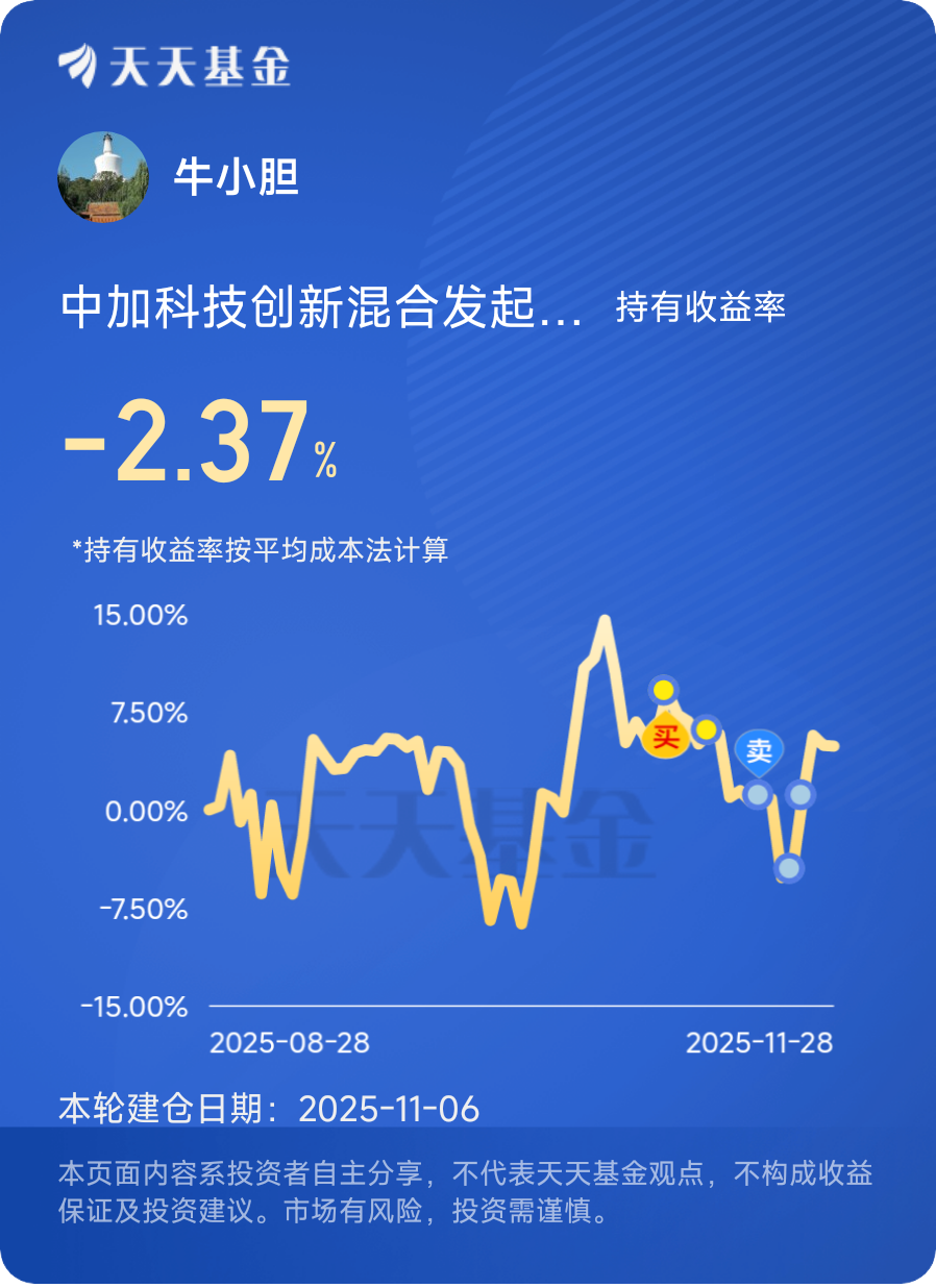 总而言之,12月的小登资产不仅值得配置,更是年末布局的“重配之选”,而中加科技创新混合发起式C,凭借其精准的主线布局、优秀的基金经理、灵活的费率结构与合理的持仓估值,成为了我布局小登资产的最优解。对我而言,投资的核心是“顺势而为、精选标的”,而此次选择,正是基于对市场趋势的判断与对产品实力的认可,我相信,在双重利好的推动下,这一选择能为我的投资组合带来可观的收益回报。@中加基金