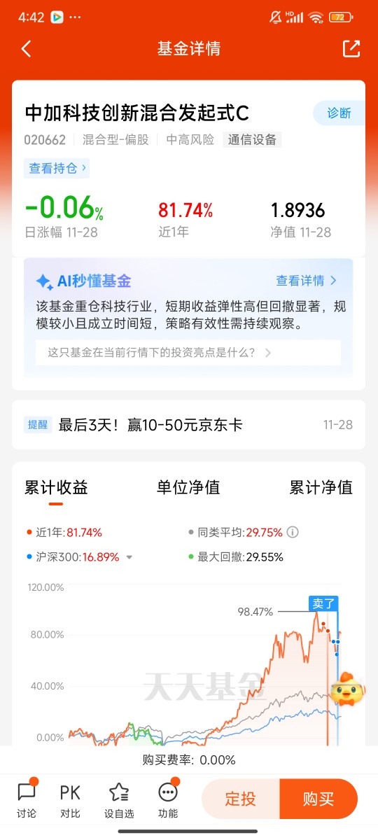 当然,我也清楚,小登资产的波动相对较大,尤其是科技类小登资产,受行业政策、技术突破、市场情绪等因素的影响较强,存在一定的投资风险。但对我而言,风险与收益始终是相伴相生的,而通过对市场逻辑、政策红利与产品实力的综合判断,我认为此次布局中加科技创新混合发起式C的“收益性价比”更高。