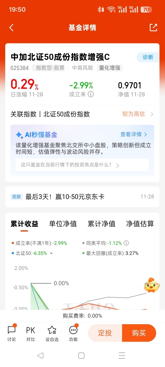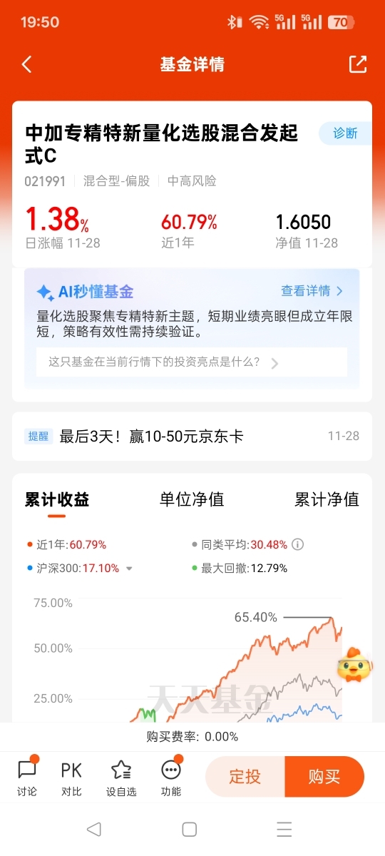 核心理由有三:一是赛道更精准,聚焦AI算力、半导体等“小登”核心领域,契合政策支持的科技前沿方向,而专精特新量化选股覆盖范围较杂,北证50成分以中小盘为主,科技纯度稍弱;二是灵活度更高,主动管理模式能动态调整持仓,在当前震荡市中比指数增强型的北证50基金更易规避板块轮动风险;三是C类费率优势适配短期布局,持有满7天免赎回费,契合当前“逢低布局、灵活调整”的操作需求。