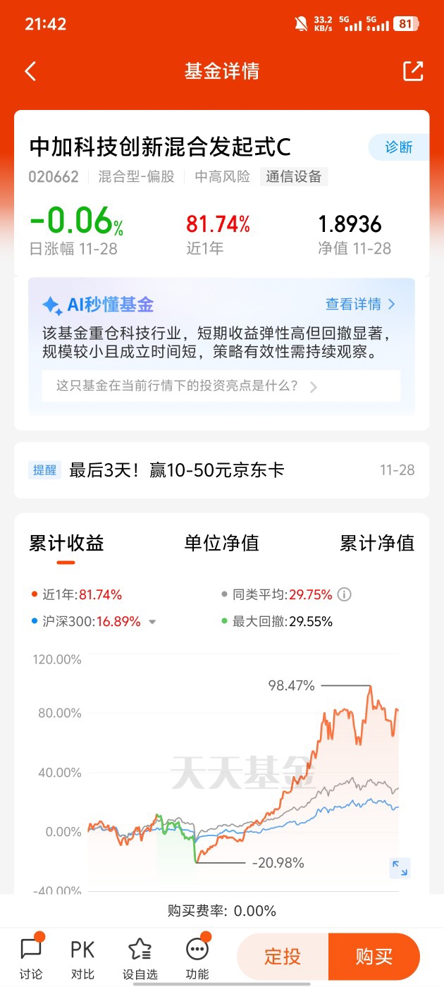 #如何选择小登资产# $中加科技创新混合发起式C$ #青禾创作计划# #晒实盘# @中加基金 @天天基金创作者中心