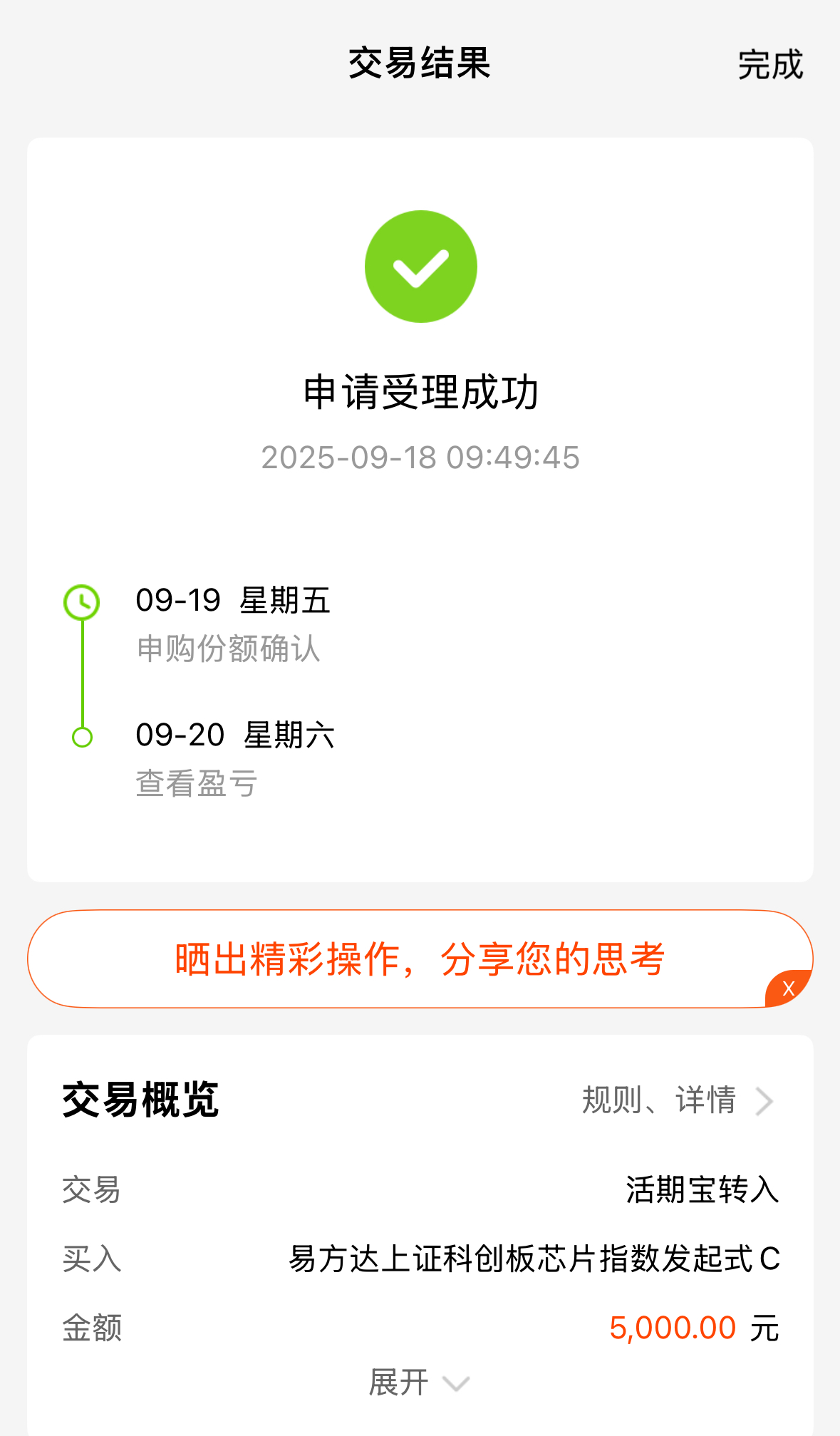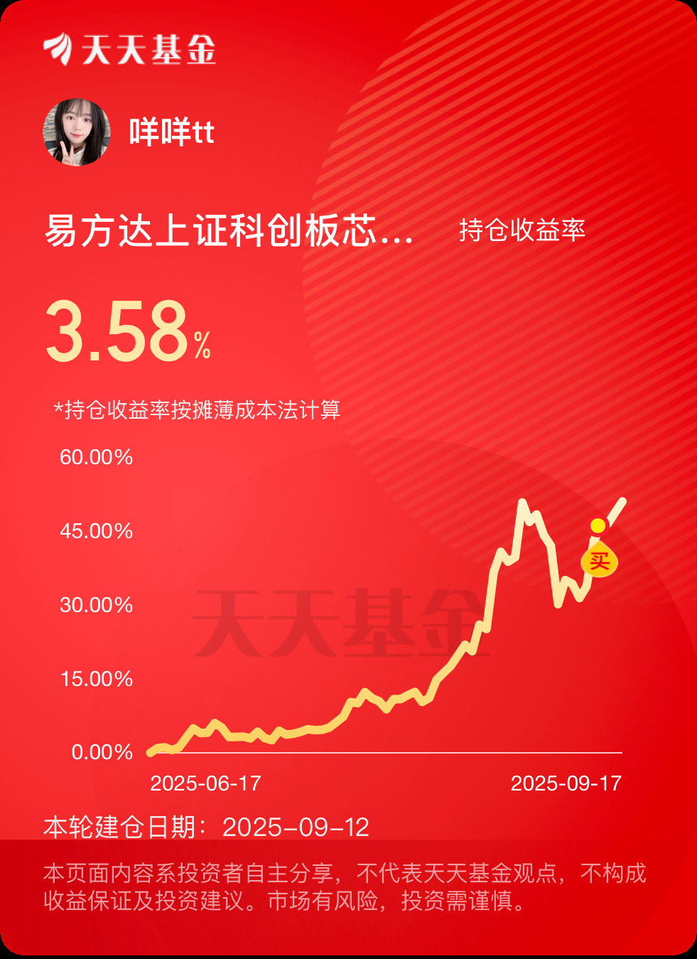 兄弟姐妹们!开盘科创芯片直线上冲,早盘一度冲击6%,不算今天,科创芯片已经实现6连涨!咩咩上周进场的$易方达上证科创板芯片指数发起式C(OTCFUND|020671)$近1周就涨了12.85%,我虽是追涨进场,但也吃肉不少,现在预估2个多点,接近5、6个点的收益,多香啊。