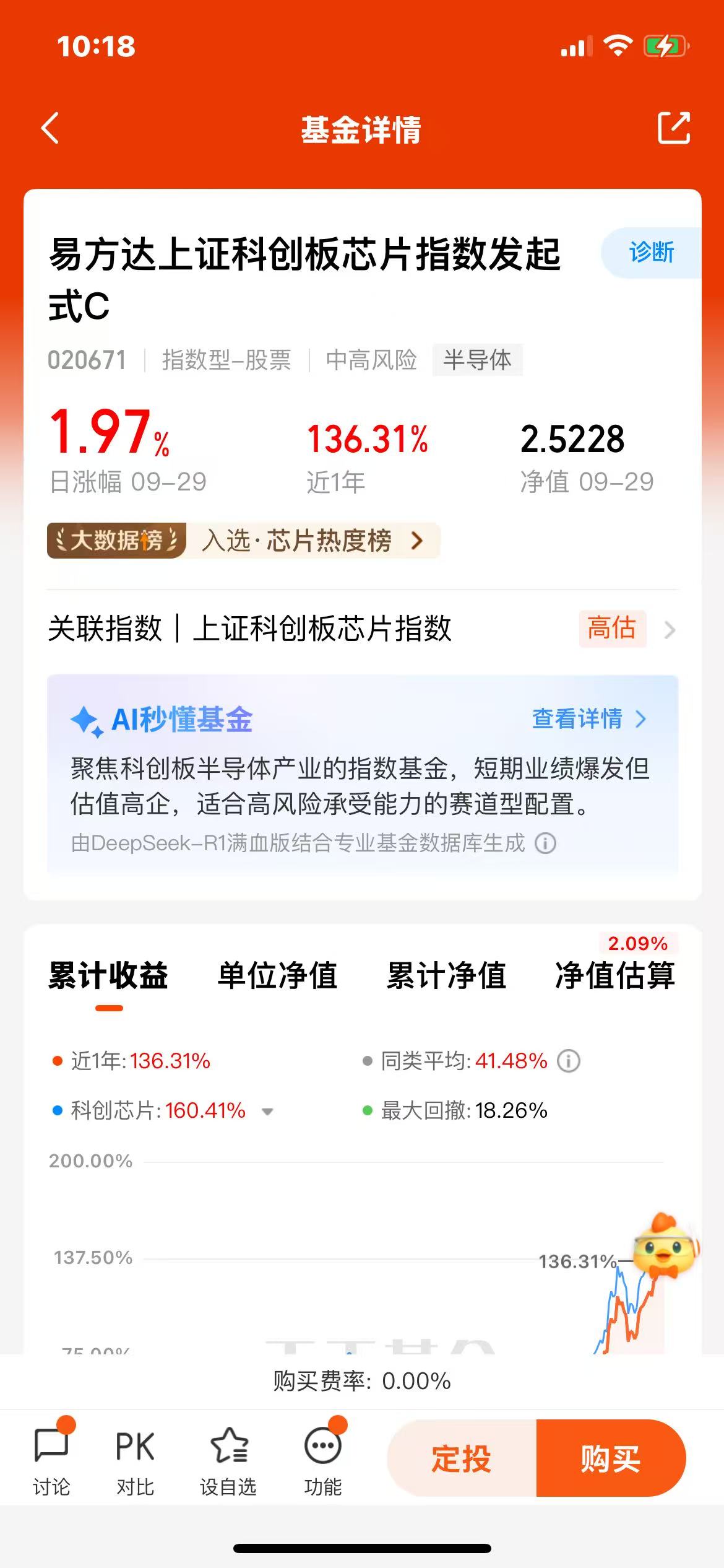 $易方达上证科创板芯片指数发起式C(OTCFUND|020671)$当前估值上涨已超2%,而且还很强势!最近利好也都是科技芯片方面,继续看多!
