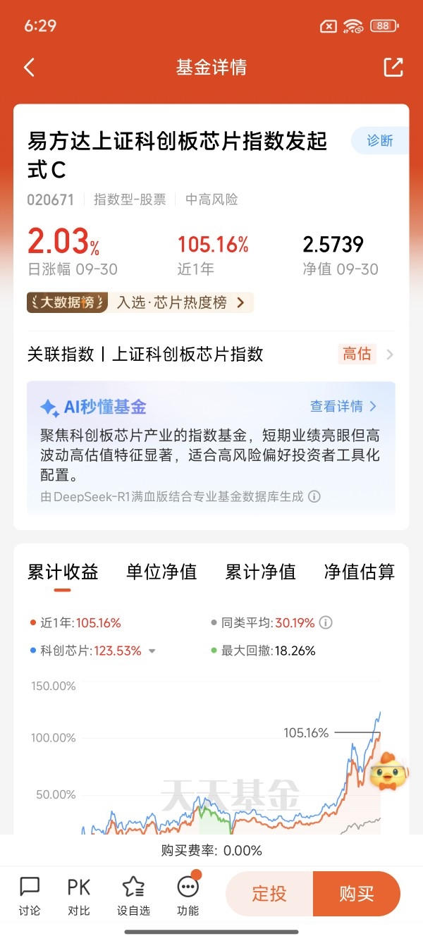 数据参考:截至2025年10月,易方达科创芯片C近一年收益159.58%,重仓股集中度57.74%,机构持仓占比0%(个人投资者为主)。