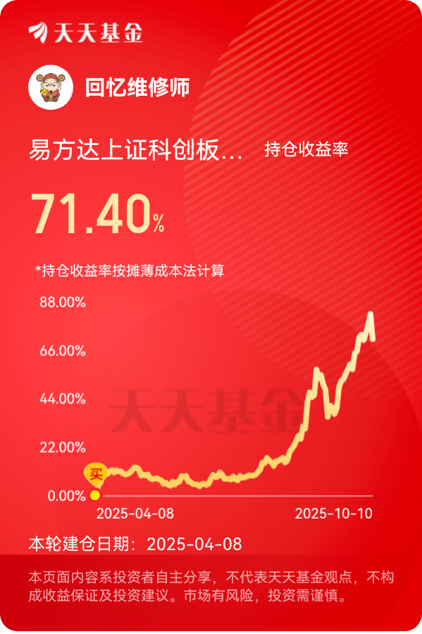 #分享国庆见闻,晒收益,瓜分好礼!# #热点话茬# 我是科技派,我的国庆旅游目的地是上海的外滩,我亲眼目睹了灯光秀,让我内心为之震撼,祖国真的太美丽了。而谈到投资,我看好芯片赛道,理由如下:投资芯片行业有一个最硬的逻辑,那就是国产替代,而我国正在这一条路上一步一个脚印的有条不紊的走着,期间我们也看到了很多可喜的现象与创新的产品,相信随着我国综合国力的日益强大,芯片行业在未来也大有可能享誉全球。同时,我国的很多芯片公司它们有着婴儿般的股本与巨人般的成长,非常值得长期投资。所以我提前布局了易方达上证科创板芯片指数发起式C(020671),它是我心中的宝藏基金。@易方达基金