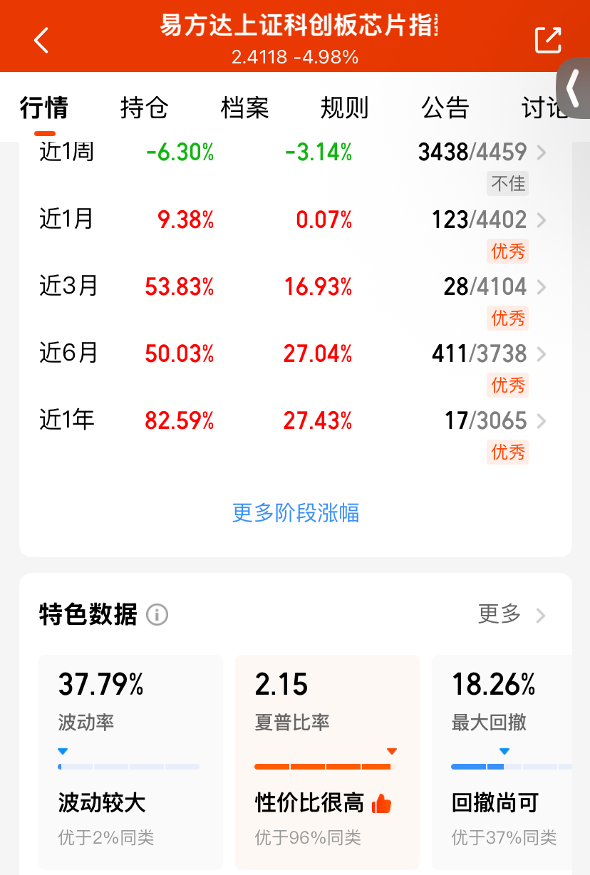 今天午后三大指数集体翻红,其中科创芯片经过前两天震荡,目前$易方达上证科创板芯片指数发起式C(OTCFUND|020671)$盘中小幅收红,它跟踪上证科创板走势,近1月涨幅9.38%、近3月涨幅53.83%,近1年涨幅82.59%,不管是阶段还是长期业绩都同类基水准!$华安上证科创板芯片ETF发起式联接C(OTCFUND|017560)$$国泰国策驱动灵活配置混合C(OTCFUND|002062)$$国泰CES半导体芯片行业ETF联接C(OTCFUND|008282)$$嘉实上证科创板芯片ETF发起联接C(OTCFUND|017470)$$汇添富上证科创板芯片ETF发起式联接C(OTCFUND|020629)$$南方上证科创板芯片ETF发起联接C(OTCFUND|021608)$$广发国证半导体芯片ETF联接C(OTCFUND|012630)$#黄金逼近4200美元!美银:明年5000##3900点得而复失!A股风格要改了?#
