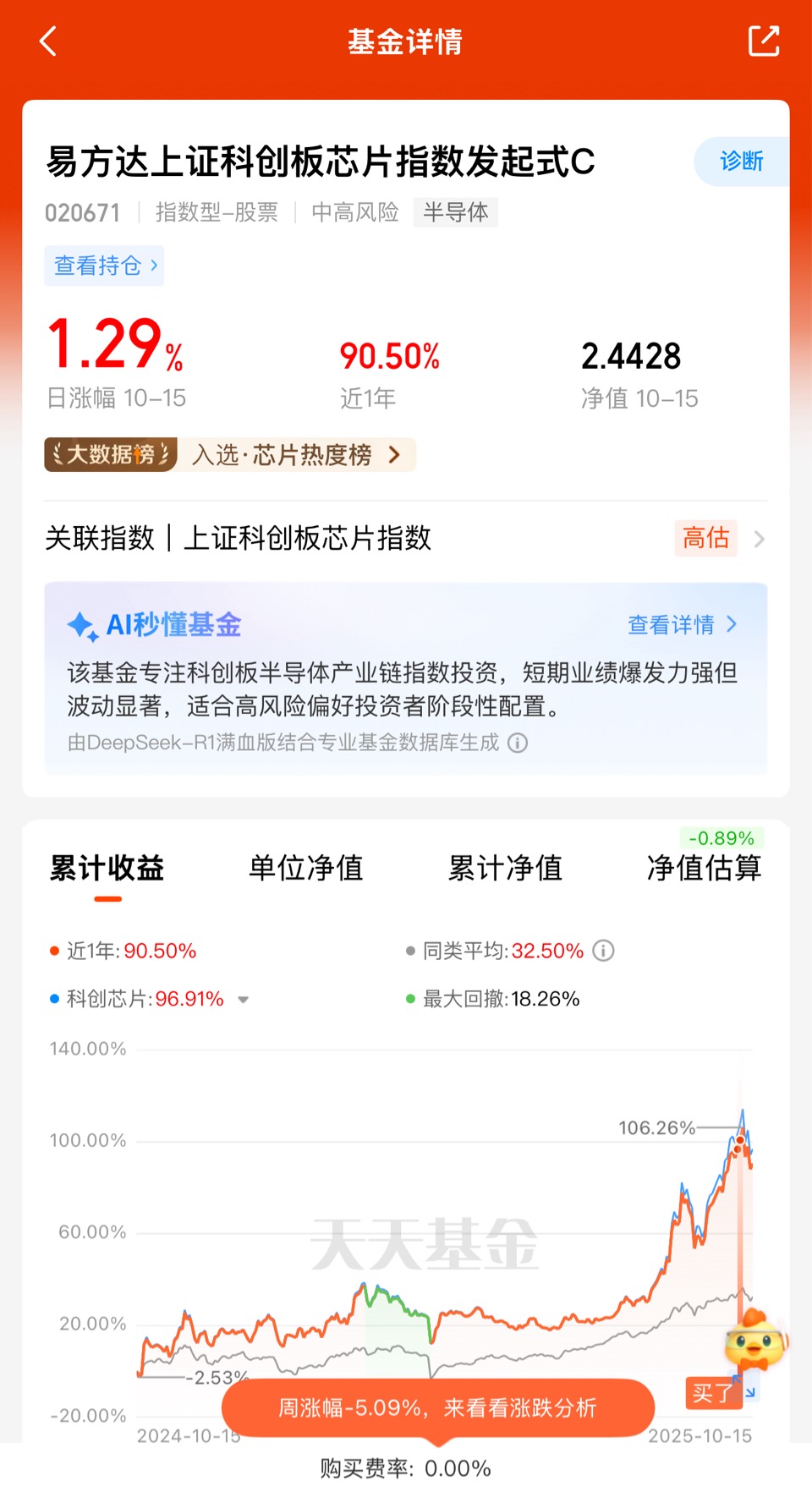 在此背景下进行布局,选择各阶段业绩表现突出的产品尤为关键。$易方达上证科创板芯片指数发起式C$ 近一年、今年来、近三个月等各维度涨幅均显著领先同类产品,精准把握芯片产业反弹机遇。