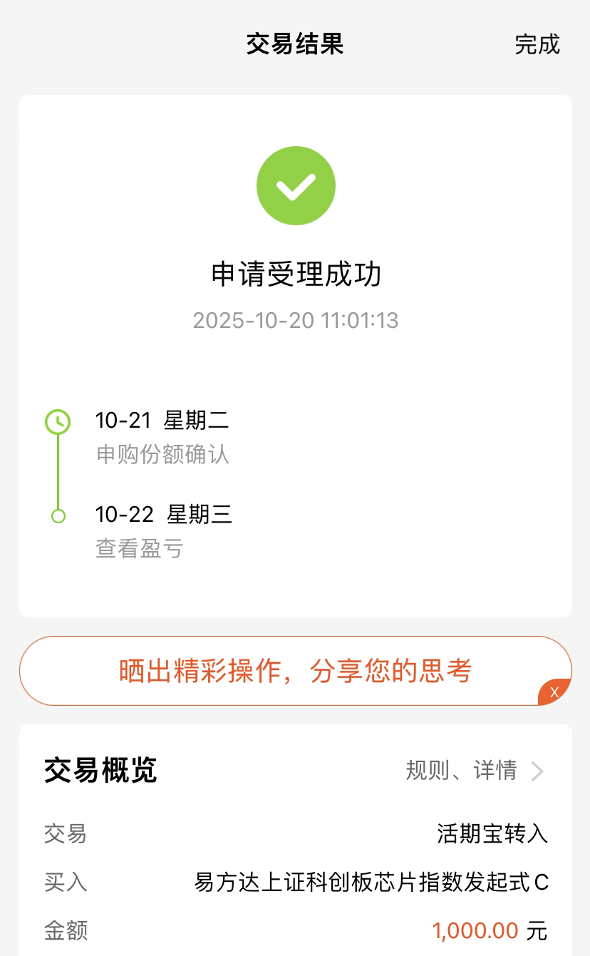 今天科创芯片表现很不错,其实之前是个逢低上车的好机会——后面要是有人工智能新热点催化,这板块还能有行情。 我想布局的话,$易方达上证科创板芯片指数发起式C(OTCFUND|020671)$就挺合适。它跟踪科创板芯片赛道,各阶段涨幅都明显领先,能多赚点是点。这会儿入手,既抓得住回调机会,也能等后续行情,省心又实在。