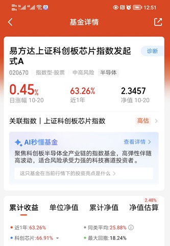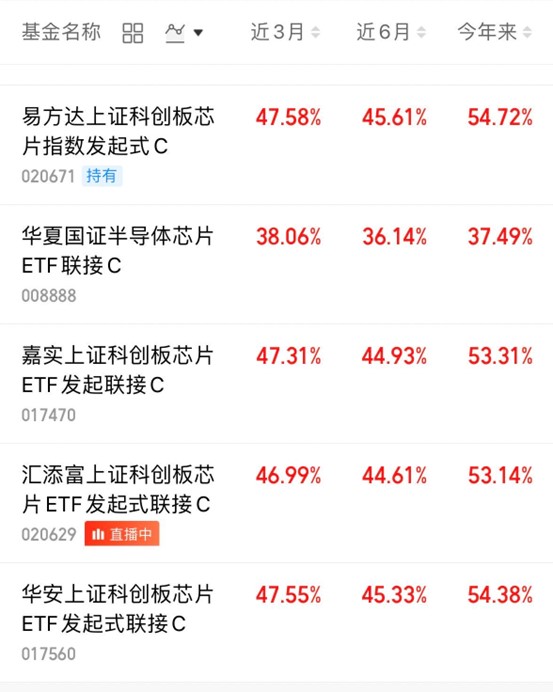 科创芯片方向:我持续关注$易方达上证科创板芯片指数发起式C(OTCFUND|020671)$。这支基金是科创板芯片的ETF联接基金。该指数从科创板上市公司中选取业务涉及半导体材料和设备、芯片设计、芯片制造、芯片封装和测试相关的证券作为指数样本。科创芯片指数近3年涨128.71%,近2年涨115.48%,近1年涨66.91%,近6月涨49.65%,近3月涨52.16%,近1月涨2.55%,表现居于众多行业板块指数的前列,确实非常强势。十月以来,科技成长方向出现了一波快速回撤,但从本周开始,已经有明显的止跌反弹信号,我认为新一轮的科技行情正在到来。