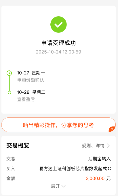 我打算再加仓$易方达上证科创板芯片指数发起式C(OTCFUND|020671)$,它今年以来以及近一年的表现都领先同类,近1年涨幅68.79%,长期收益亮眼。趁板块强势布局,我跟着市场节奏布局一波吃肉肉!#党的四中全会审议通过“十五五”规划建议#