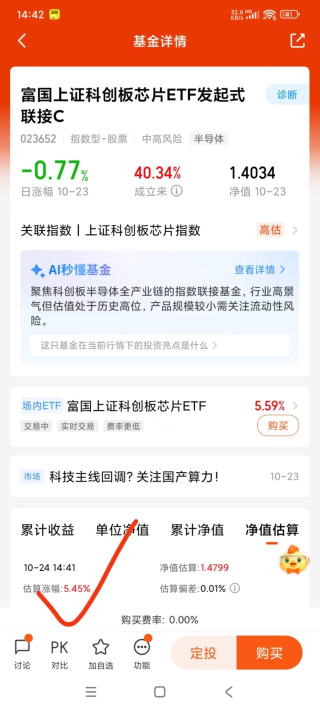 $富国上证科创板芯片ETF发起式联接C$估值快6%,芯片板块非常给力啊,今天赢麻