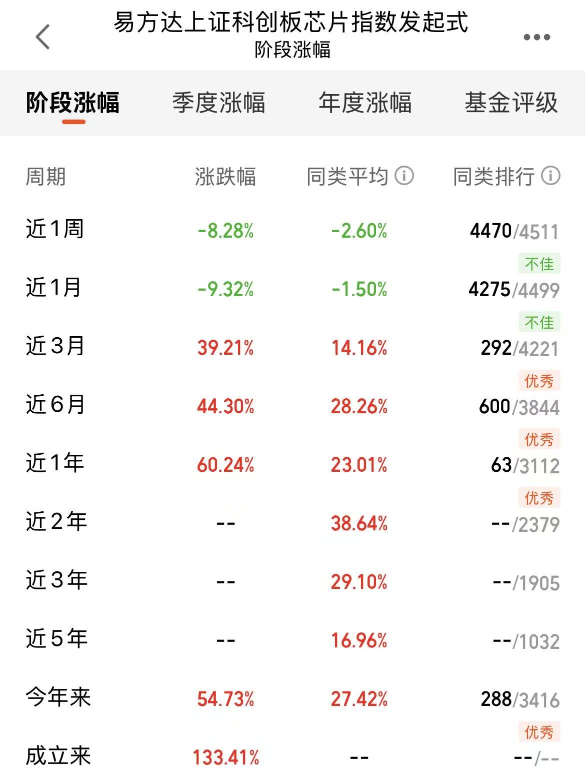 今天大盘上涨,科技板块涨幅相当的优秀,芯片也是大反弹了,经过震荡也处于相对低位,再加上芯片企业突破频发,全球芯片周期复发,未来可期。$易方达上证科创板芯片指数发起式C(OTCFUND|020671)$是聚焦科创板芯片全产业链的,持仓有海光信息、中芯国际等龙头,年化收益率60%,业绩优秀,我觉得前景不错的。