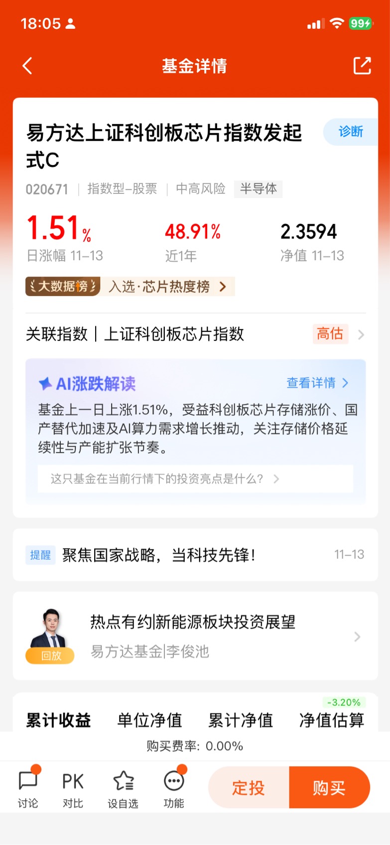 养基玩家:我下周打算开启定投$易方达上证科创板芯片指数发起式C$,这只基金昨天涨