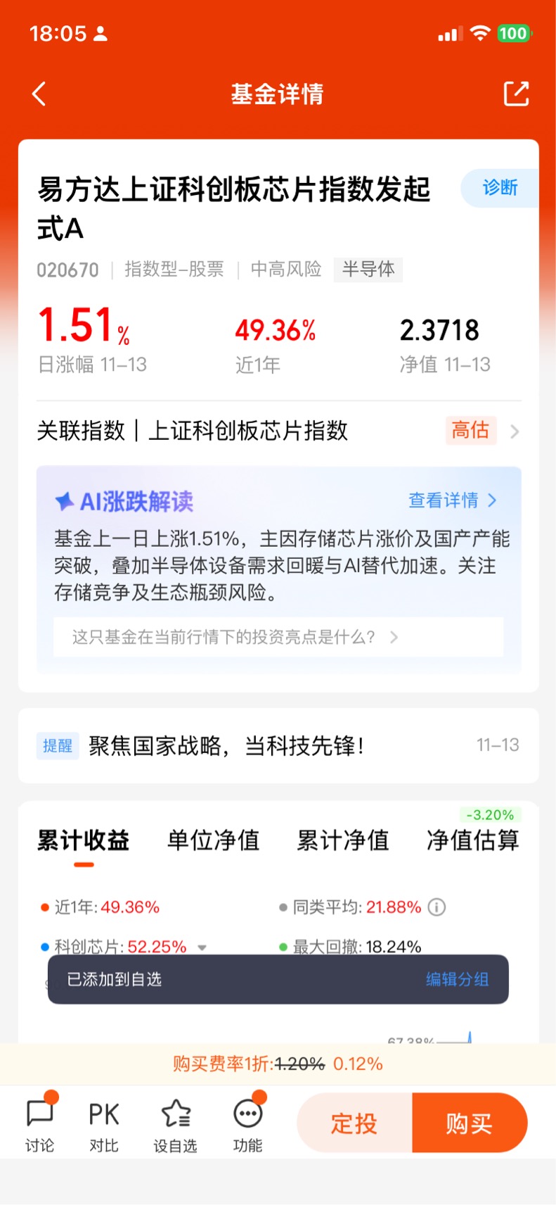 #观点搭子团火热招募中!# #热点话茬# 养基玩家: 我下周打算开启定投$易方达上证科创板芯片指数发起式C$ ,这只基金昨天涨1.51%,近一年上涨49.2%,在近4000只同类基金中排名前5%,业绩表现非常优秀!