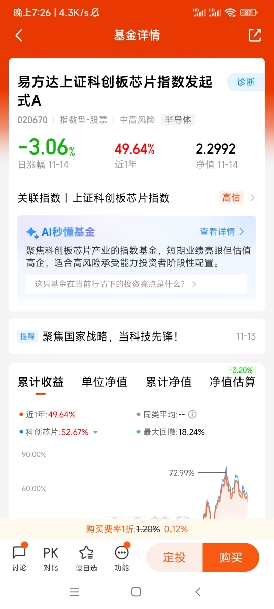 11月14日,芯片板块震荡回调,科创芯片指数跌3.08%报2.2670,但存储涨价主线与产业红利未改,易方达上证科创板芯片指数发起式C 仍具高投资价值。核心逻辑扎实:DDR5价格Q4涨幅上修至18-23%,NAND合约价同步上涨,AI服务器驱动存储需求爆发;大基金三期加码光刻材料,国产替代加速。短期回调正是布局良机,长期受益于行业超级周期,值得重点关注并逢低布局。@易方达基金
