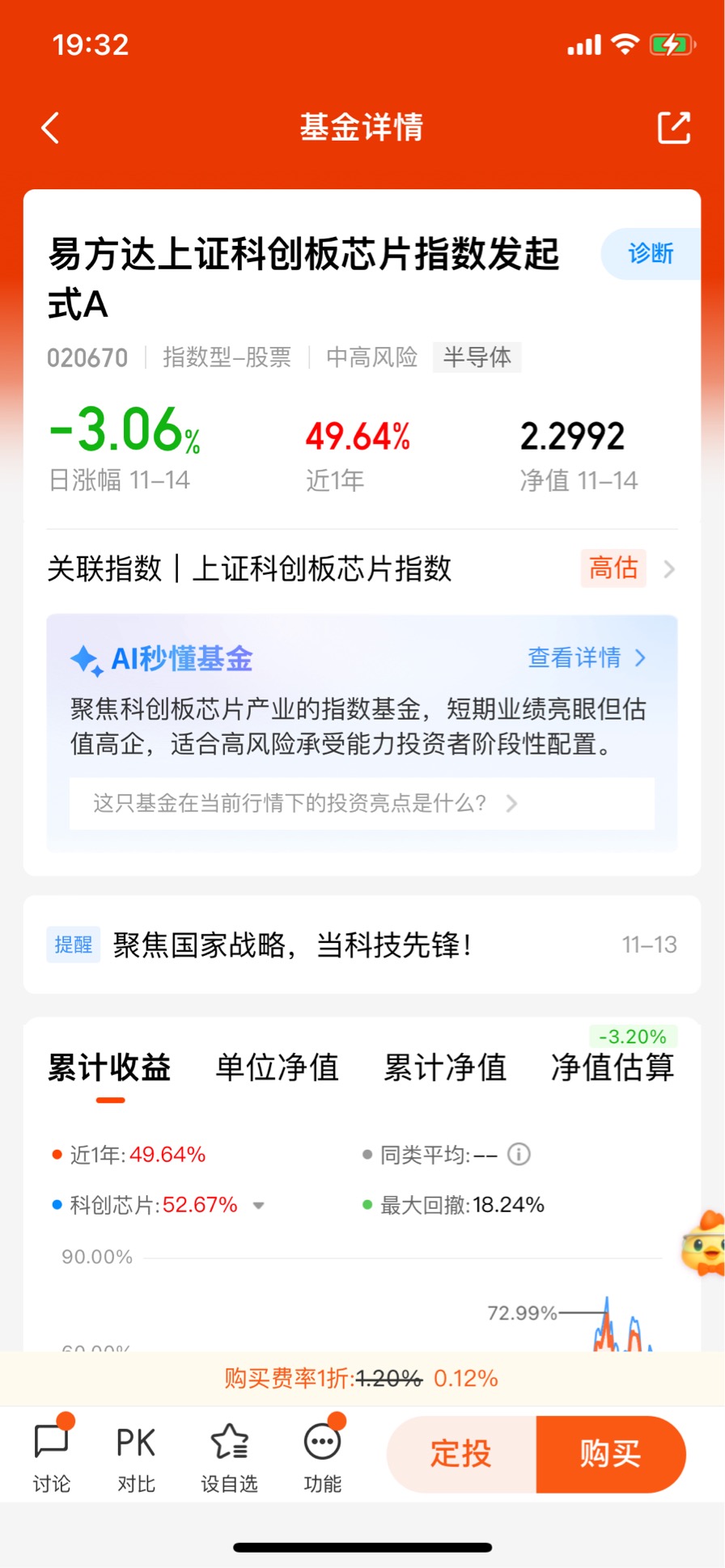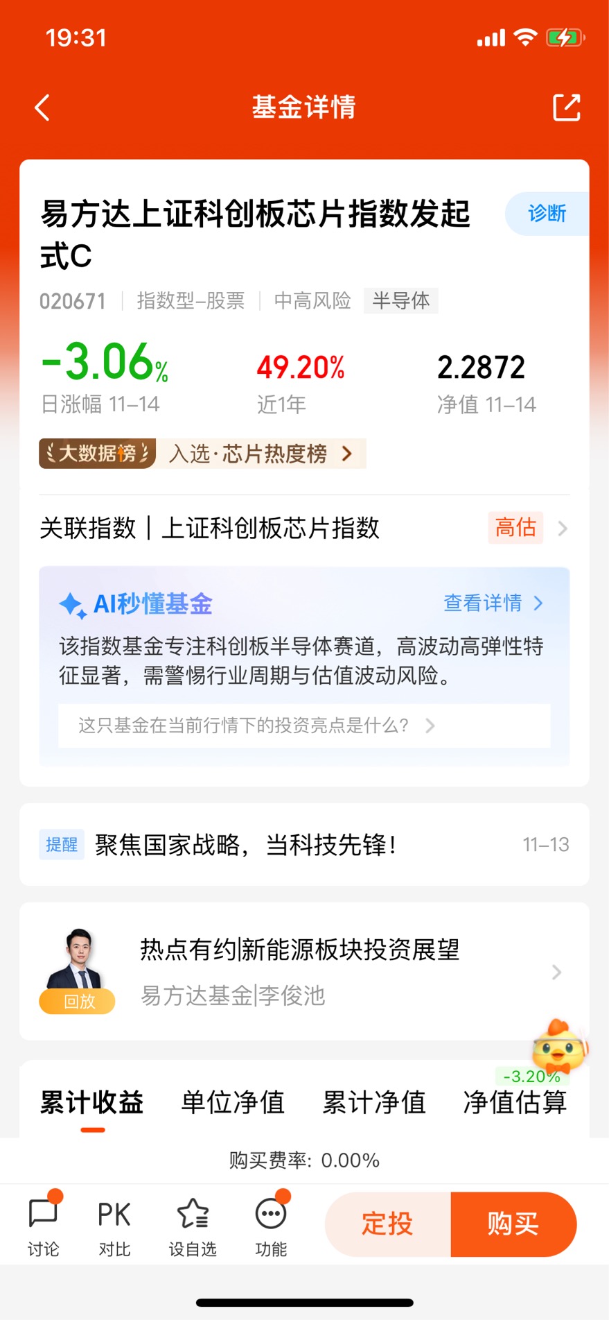11月14日。$易方达上证科创板芯片指数发起式C$ 存储芯片涨价潮才刚刚开始,AI算力对高带宽存储的需求简直爆炸式增长。现在海内外巨头都在疯狂加码AI研发,直接把未来两年的存储产能都锁定了,这波涨价周期可能会比想象中更持久。易方达这只科创板芯片基(020671)抓得真准,近一年涨了近50%,够猛!基金经理李栩虽然年轻但经验丰富,管着一堆行业ETF,对科技赛道研究很深。最关键的是费率超友好,持有7天就免赎回费,特别适合我们小散参与。易方达作为头部大厂,投研实力没得说。现在芯片板块正处于"需求+供给"双驱动的黄金期,借道这只指数基布局,既能吃到行业红利又能分散个股风险,性价比真的高!