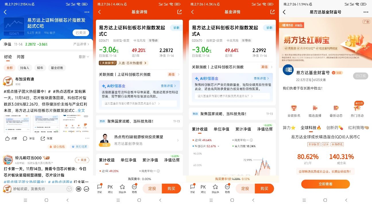 11月14日发帖3篇。看好易方达上证科创板芯片指数发起式C,核心源于产业风口与政