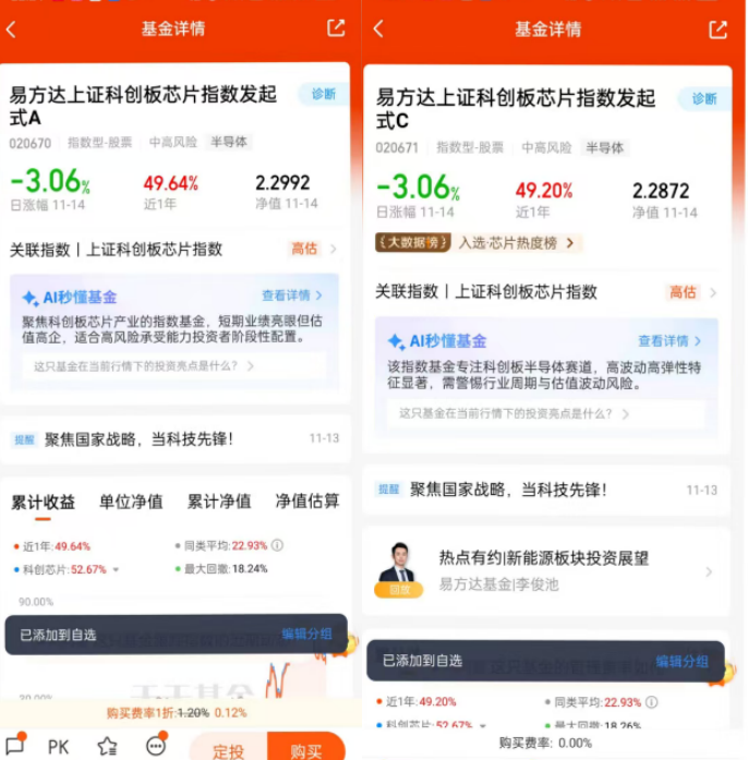 11月14日,存储芯片涨价周期叠加AI算力投资热潮,芯片板块景气度持续攀升。$易方达上证科创板芯片指数发起式C$ 聚焦科创板核心芯片企业,近期行业数据显示存储芯片价格大幅上涨,AI服务器需求拉动高端存储用量激增,叠加海外巨头如三星、海力士计划上调NAND价格,产业链盈利预期强化。该基金近一年表现突出,跟踪的科创板芯片指数年内涨幅显著,凸显板块弹性。我认为AI算力建设与国产替代双逻辑驱动下,芯片行情有望延续,当前调整或是布局机会,准备启动定投,长期看好技术创新与供需格局优化的双重红利。@易方达基金