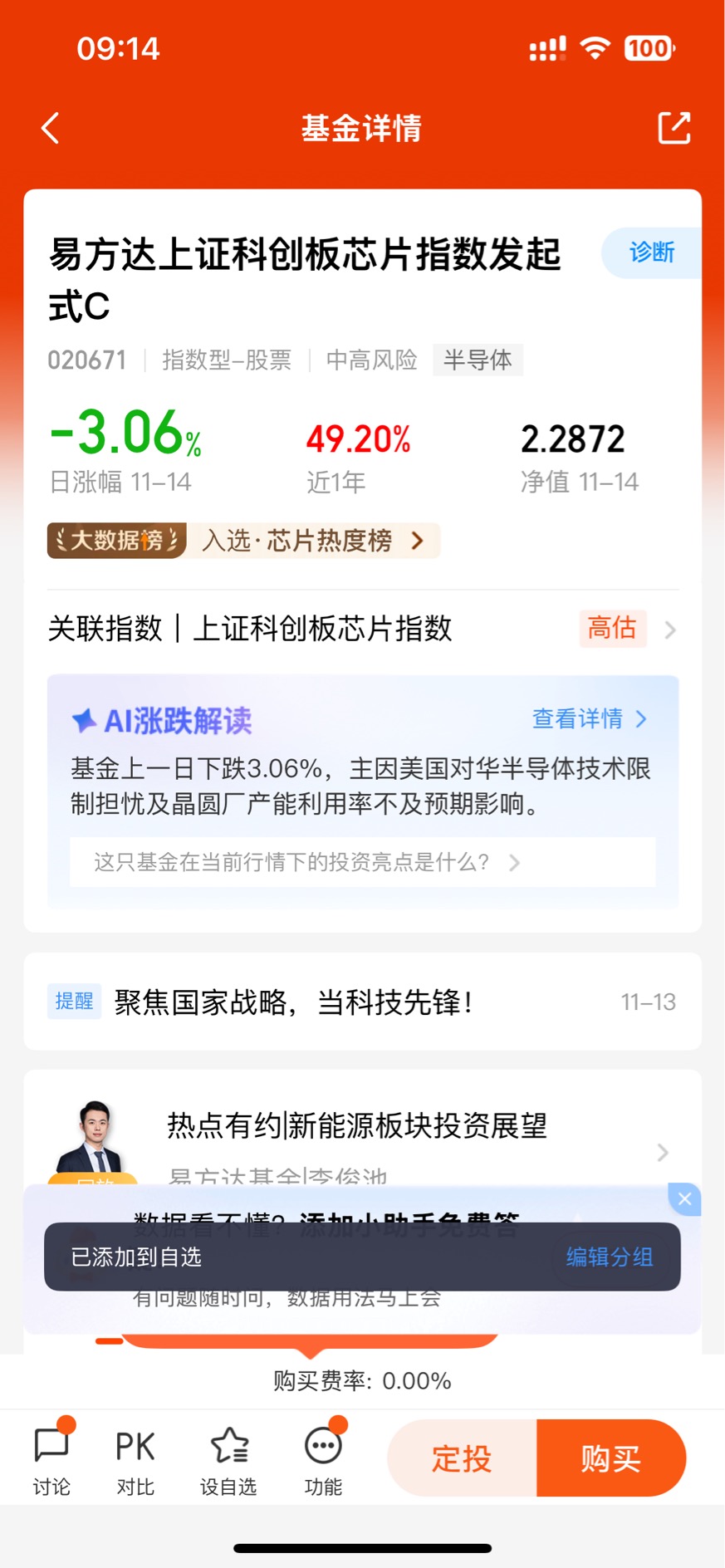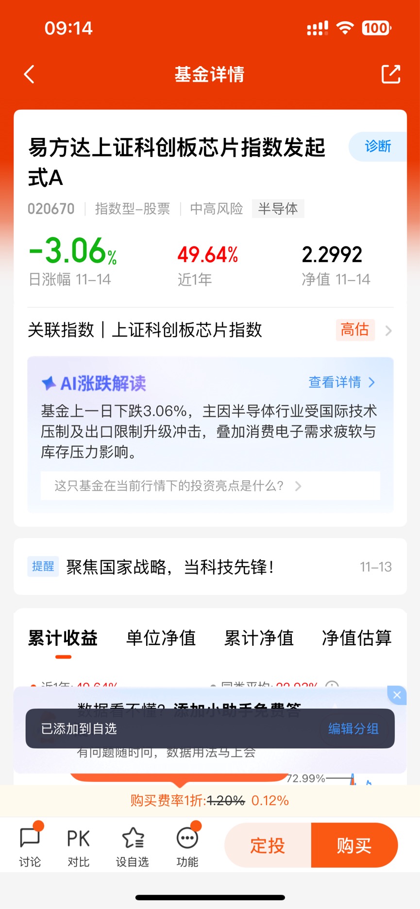 #观点搭子团火热招募中!# #热点话茬# $易方达上证科创板芯片指数发起式C$ 作为这只基金的持有者,我能感受到它近期的市场波动,11月14日随板块出现了回调。不过从持仓来看,它聚焦科创板芯片全产业链,覆盖了设计、制造、设备等核心环节的龙头企业,贴合行业主线。