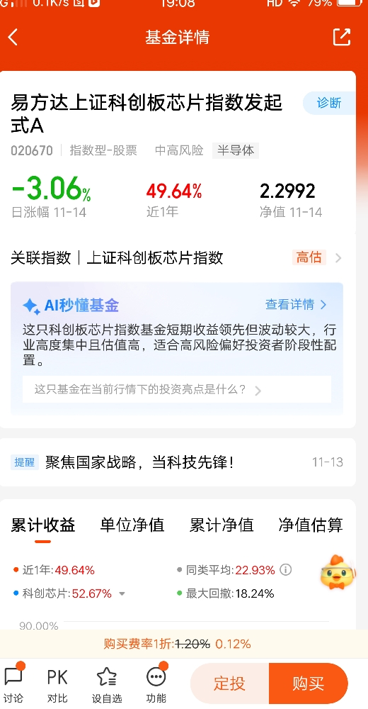 11月15日,今日休市。今年从春节晚会开始,春晚的人形机器人亮相再到DeepSeek软件的出现,科技板块就引领全年上涨,是今年的主旋律,各路资金对于科技行业的看好,所以助推了今年的科技行情,芯片行业也不例外。$易方达上证科创板芯片指数发起式C$ 今年至今已上涨51.62%,表现出了不错的潜力。@易方达基金