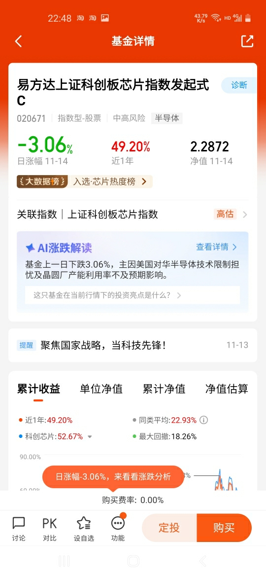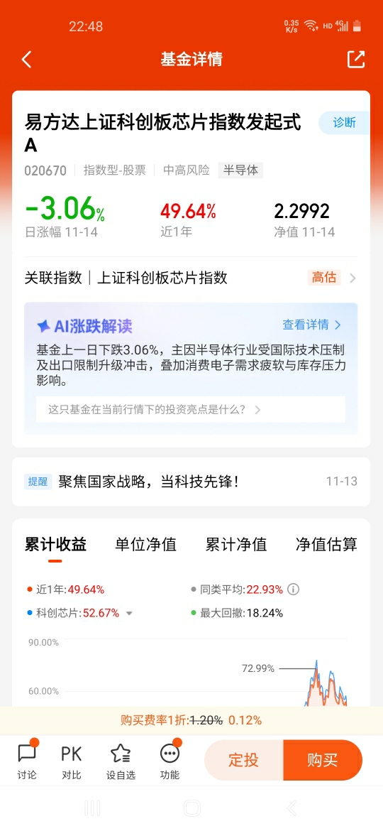 #观点搭子团火热招募中!# #热点话茬# 11月15日,本周芯片板块回调,但行业整体仍然处于向上的趋势当中,再加上本轮科技成长行情后市仍有看点,我认为$易方达上证科创板芯片指数发起式C$ 仍然可以继续持有。芯片行业的机会主要体现在“从北美向国产转移”的国产替代+AI引领科技的大逻辑当中。毕竟,国产AI大模型想大幅跃迁,提升算力是抄近道的选择,因此国产AI与国产芯片将加速整体崛起。而在政策管控下,即便是出于安全性的考虑,未来国内企业也会越来越多考虑使用国产芯片,所以长期来看仍然看好芯片的后市。@易方达基金