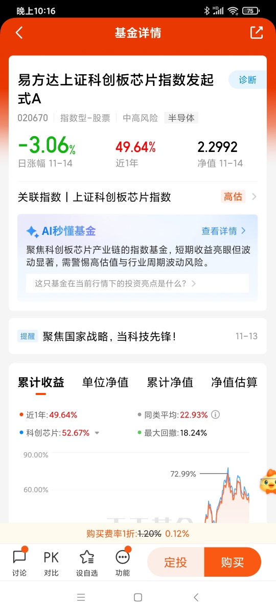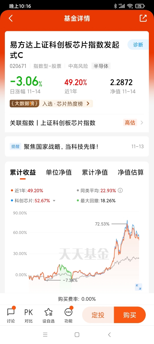 11月16日,美股周五止跌了,期待下周大A表现,$易方达上证科创板芯片指数发起式
