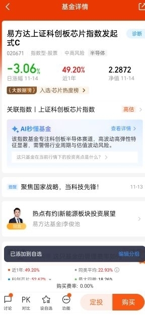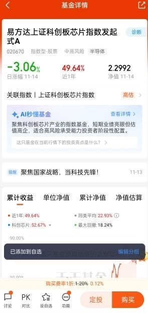 短期波动不改长期景气。$易方达上证科创板芯片指数发起式C$近一日净值回落3.06