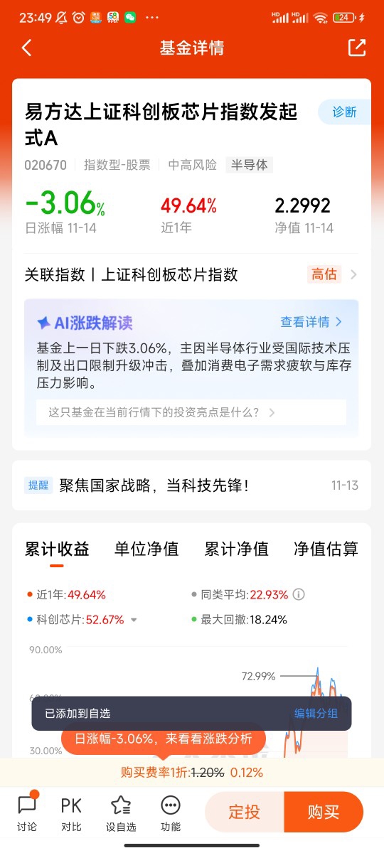 打卡第三天,11月16日,第一篇文章!我看好易方达上证科创板芯片指数发起式C基金