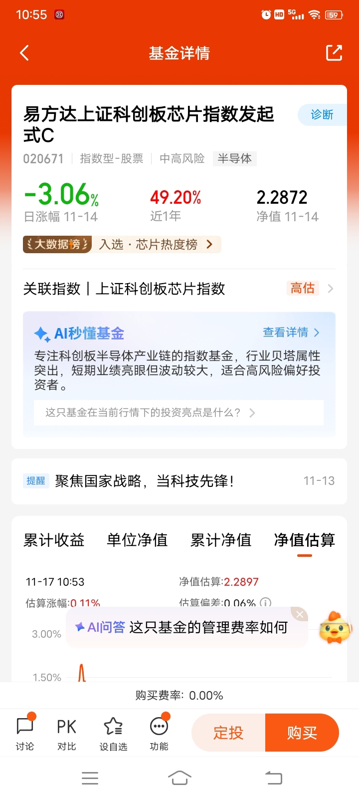 也正是因为看准了这个趋势,我才决定定投易方达这只科创板芯片指数基金。它聚焦的是科创板半导体产业链,刚好踩在技术突破的主线上,行业贝塔属性很突出——虽然短期波动可能不小,但半导体作为硬科技的核心赛道,有基础研究突破托底,又有国产替代的长期逻辑,长期成长的确定性其实很强。加上现在政策对科创领域的倾斜越来越明确,不管是半导体还是低空经济这类新方向,都在“技术+政策”的合力里加速跑,布局有核心技术的科创标的,其实就是跟着创新的主节奏走。