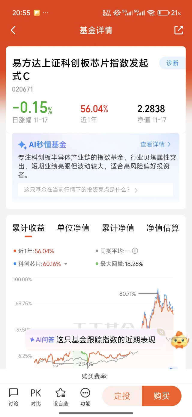 #观点搭子团火热招募中!# #热点话茬# 11月17日,第2篇,易方达上证科创板芯片指数 A/C(020670/020671)估计快要见底了。