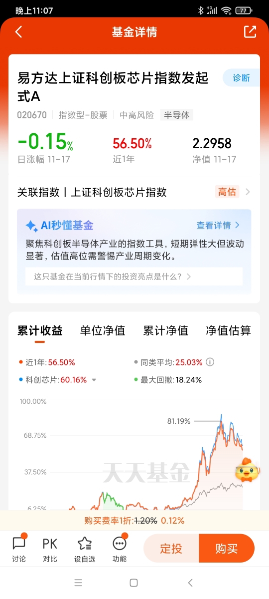 11月17日,今天市场继续下跌,但$易方达上证科创板芯片指数发起式C$仅跌了0.