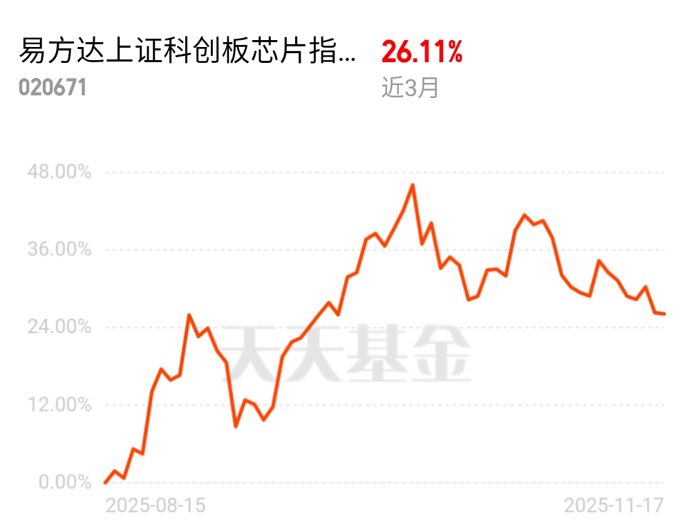 今日芯片板块又现小幅回调,$易方达上证科创板芯片指数发起式C$也跟着跌了0.15