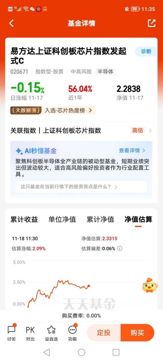 11月18日打卡第五天,周二芯片目前涨幅2%+我选择持仓不动