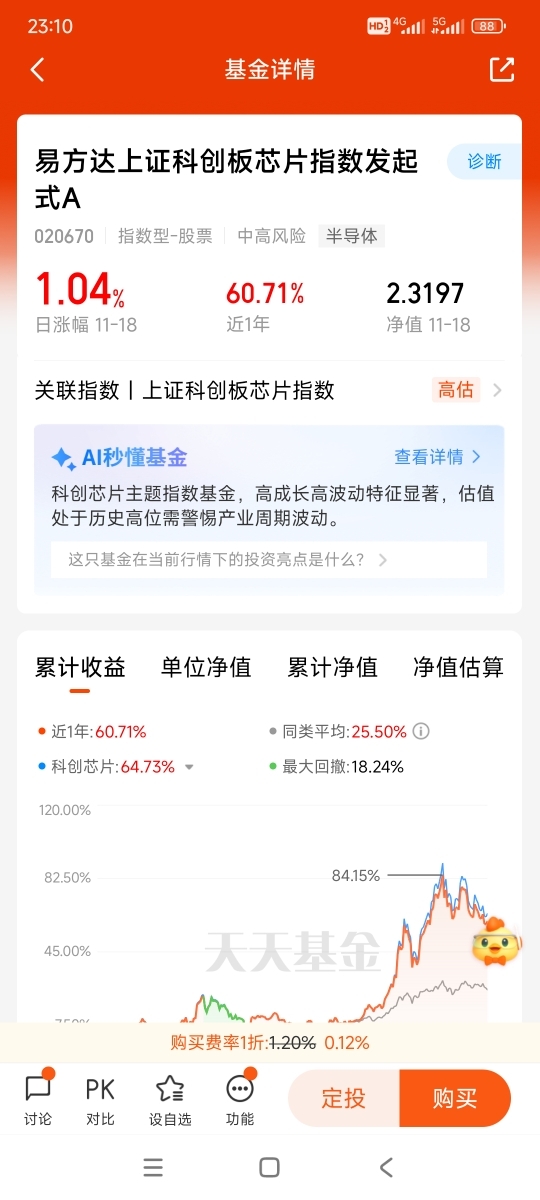 11月18日,第四天打卡发帖,今日科创芯片指数大涨1.09%,$易方达上证科创板