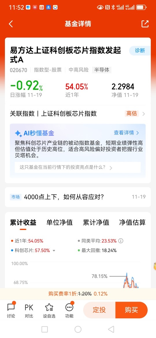 11月19日,今日芯片板块指数小幅下跌,涨幅0.92%,调整还是没有结束,维持震荡整理走势。不过,下行空间相对有限,可以考虑分配低吸或者定投。