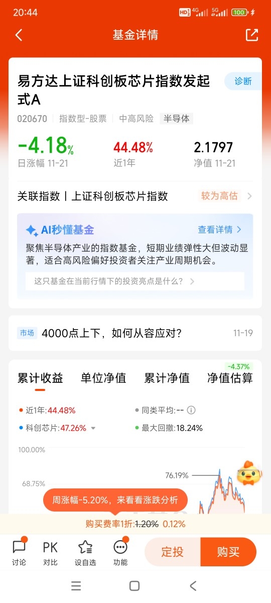 11月23日,第九天打卡发帖,上周$易方达上证科创板芯片指数发起式C$跌了5.2