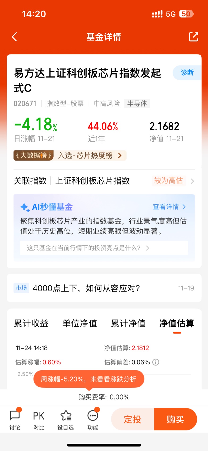 $易方达上证科创板芯片指数发起式C$今天我持有的易方达上证科创板芯片指数发起式C