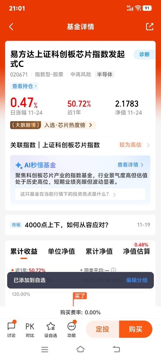 #观点搭子团火热招募中!# #热点话茬# 11月24日,$易方达上证科创板芯片指数发起式C$ (020671)净值逆势上涨0.47%,在科技板块持续调整中展现抗跌性。基金近1月虽下跌9.91%,但近3月涨幅达14.6%,长期成长趋势未改。作为C类份额,其无申购费、持有7天免赎回费的费率优势,适配当前震荡市的波段操作需求。当前调整源于获利盘兑现与外围预期波动,而AI算力需求爆发、国产替代推进的核心逻辑未变,基金精准跟踪指数(跟踪误差控制在0.35%内),能充分捕捉板块修复收益。短期波动正是低成本布局窗口,科技板块反弹有望随产业利好加速兑现。@易方达基金