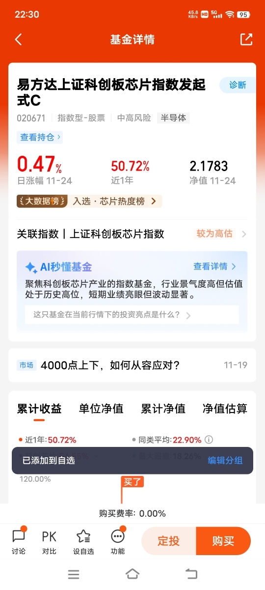#观点搭子团火热招募中!# #热点话茬# 11月24日上证科创板芯片指数呈现震荡分化态势,盘中虽有波动但部分核心标的逆势走强,天岳先进、峰岹科技等个股涨幅超4%,国产GPU龙头摩尔线程当日启动科创板申购,为板块注入事件性催化。前期板块调整源于获利盘兑现与全球成长股估值压制,当前已逐步释放风险。从行情看,存储芯片、GPU等细分领域率先企稳,资金借道科创芯片ETF持续流入,叠加AI算力需求的刚性支撑,短期反弹条件正在成型。不过板块全面回暖仍需等待资金回流与政策利好共振,当前可重点关注技术突破明确、估值回归合理的细分龙头。$易方达上证科创板芯片指数发起式C$ @易方达基金