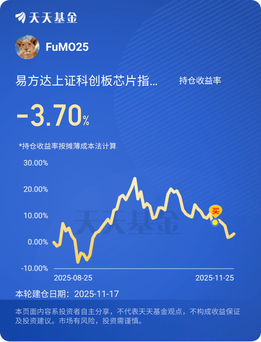 #观点搭子团火热招募中!# #热点话茬# 11月25日,今天芯片板块冲高回落,涨得不多,大盘成交量比昨天略好点。芯片行业整体仍然处于向上的趋势当中,再加上本轮科技成长行情后市仍有看点,我认为$易方达上证科创板芯片指数发起式C$ 仍然可以继续持有。芯片行业的机会主要体现在“从北美向国产转移”的国产替代+AI引领科技的大逻辑当中。毕竟,国产AI大模型想大幅跃迁,提升算力是抄近道的选择,因此国产AI与国产芯片将加速整体崛起。而在政策管控下,即便是出于安全性的考虑,未来国内企业也会越来越多考虑使用国产芯片,所以长期来看仍然看好芯片的后市。@易方达基金
