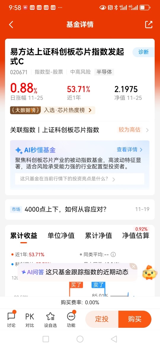 11月25日,今日芯片指数小幅上涨,调整还未结束,$易方达上证科创板芯片指数发起
