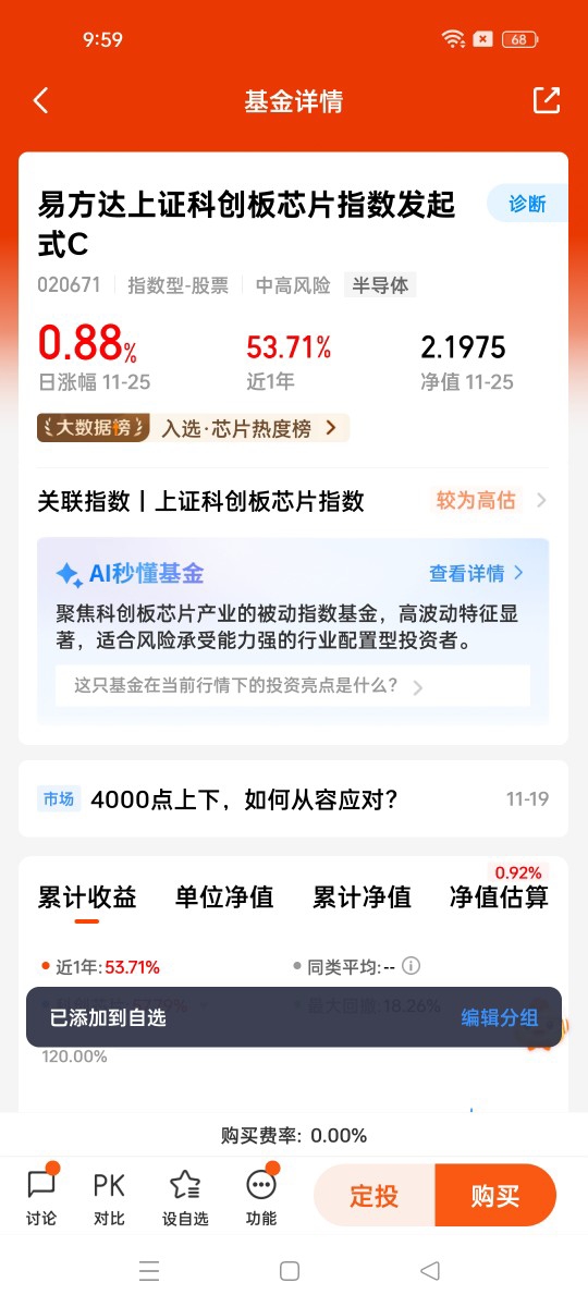 #观点搭子团火热招募中!# #热点话茬# $易方达上证科创板芯片指数发起式C$ 11月25日上证科创板芯片指数结束震荡调整,单日上涨0.92%,收盘价2421.37点,科创芯片ETF同步走强,午间涨幅即达1.96%,市场情绪明显修复 。此前板块因前期涨幅较大、获利盘兑现出现回调,但当前估值已趋于合理,叠加板块前三季度业绩稳步增长,盈利韧性为估值修复提供支撑 。更关键的是,政策强制适配要求落地,核心场景国产芯片占比明确,为行业打开万亿级市场空间 。今日行情既是短期情绪修复的体现,更是估值与业绩匹配后的必然反应,随着政策红利持续释放与需求端持续发力,板块有望摆脱震荡,开启反转行情。@易方达基金