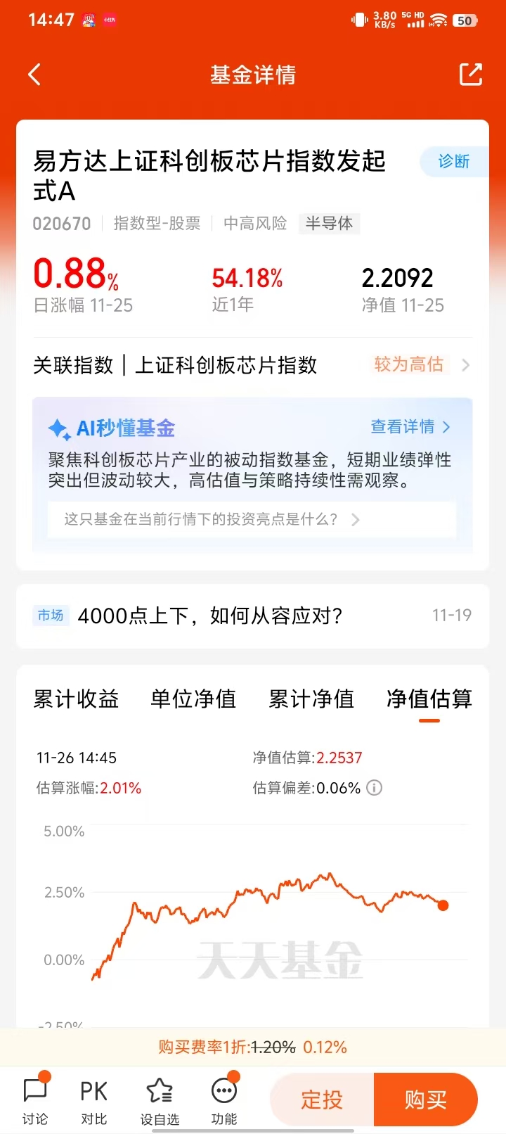 $易方达上证科创板芯片指数发起式C(OTCFUND|020671)$